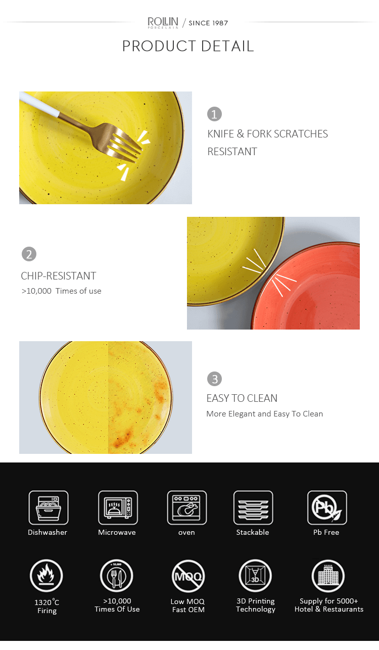 La vaisselle est un choix si important car c'est ce que vos invités vont toucher, ressentir et expérimenter avec la moindre bouchée de leur nourriture.En tant que fabricant, nous visons non seulement à répondre à vos besoins, mais également à dépasser vos attentes en matière de conception, de fonctionnalité et d'abordabilité. Cette conception